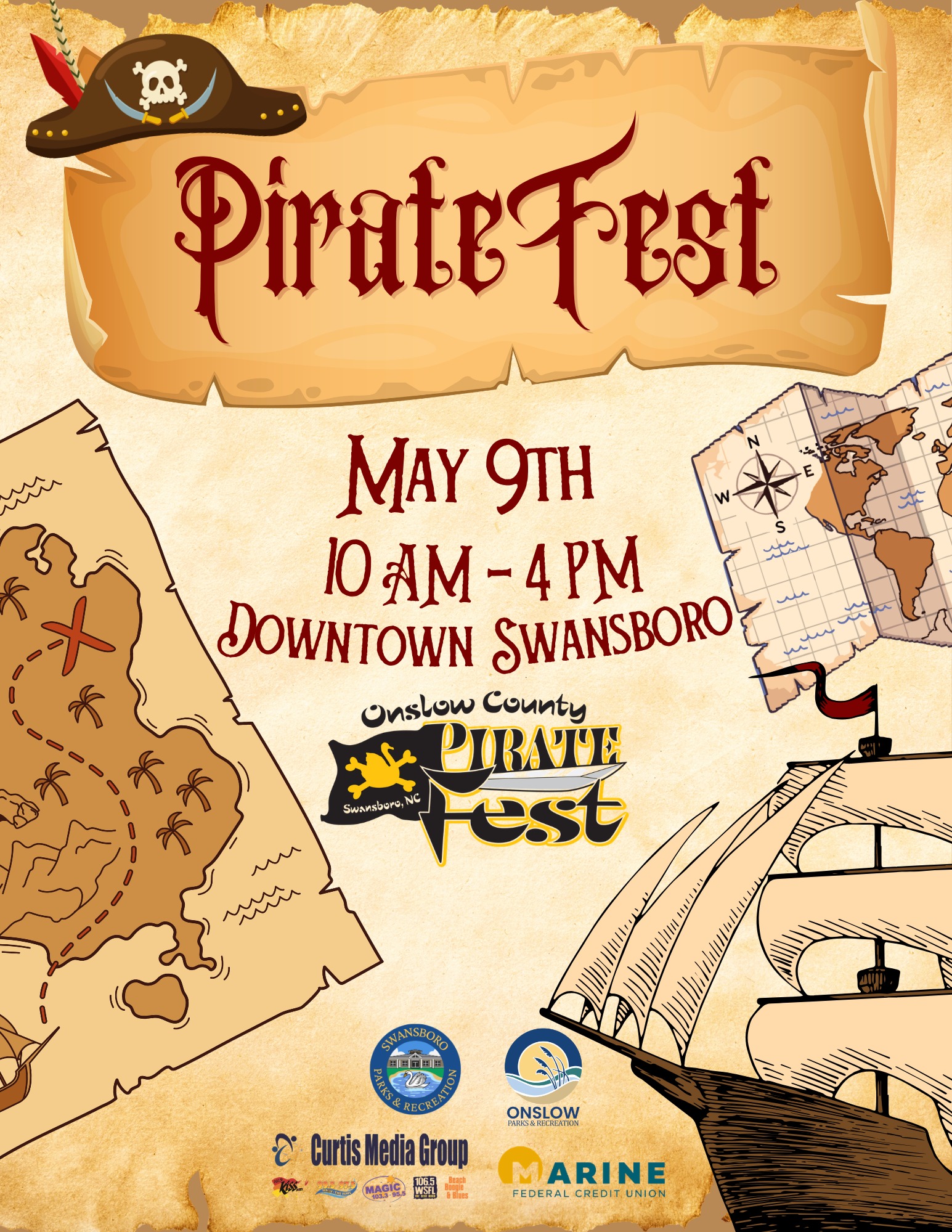 Onslow County and Swansboro Parks and Recreation Departments proudly present Pirate Fest — an epic day of high-seas adventure in Historic Downtown Swansboro!